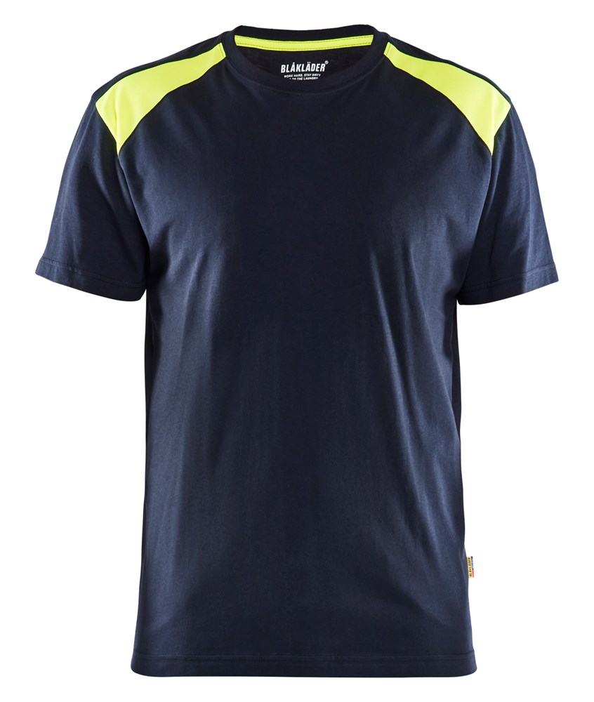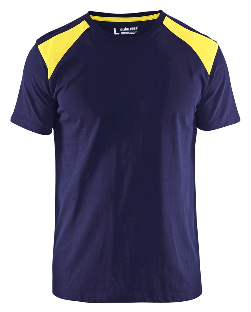 T-shirt bi-colour 3379 marineblauw/high vis geel 4XL