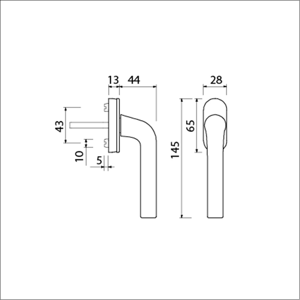- Type: Draai-kiep raamgreep met ovaal rozet en nokken