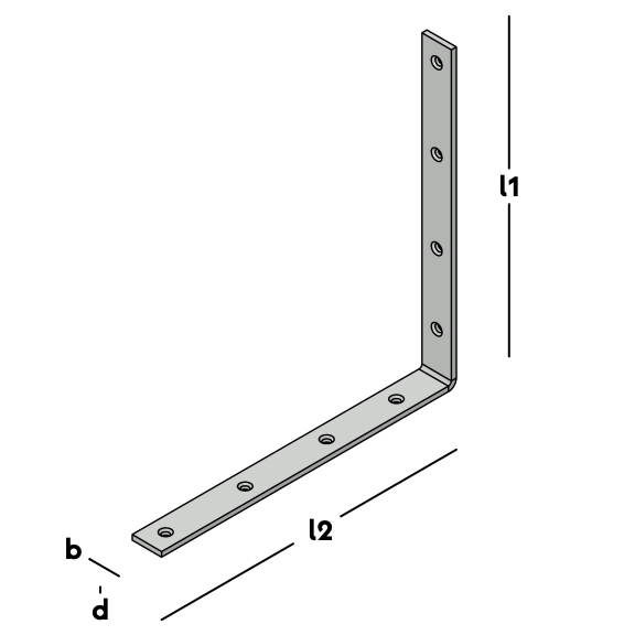 Montagehoek met schroefgaten, o.a. voor het versterken van lichte houten hoekconstructies.