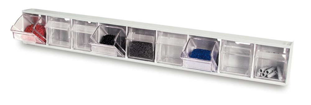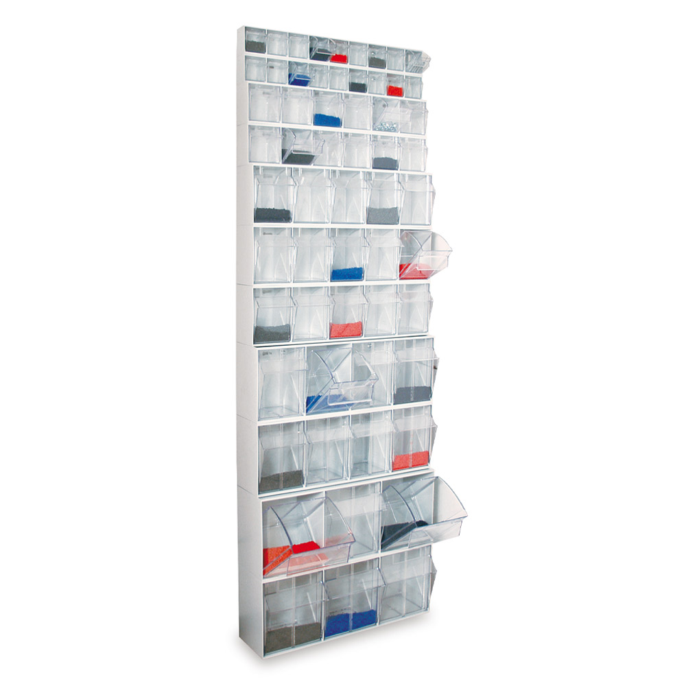 - Stevig grijs PS-frame met 5 transparante PS-lades