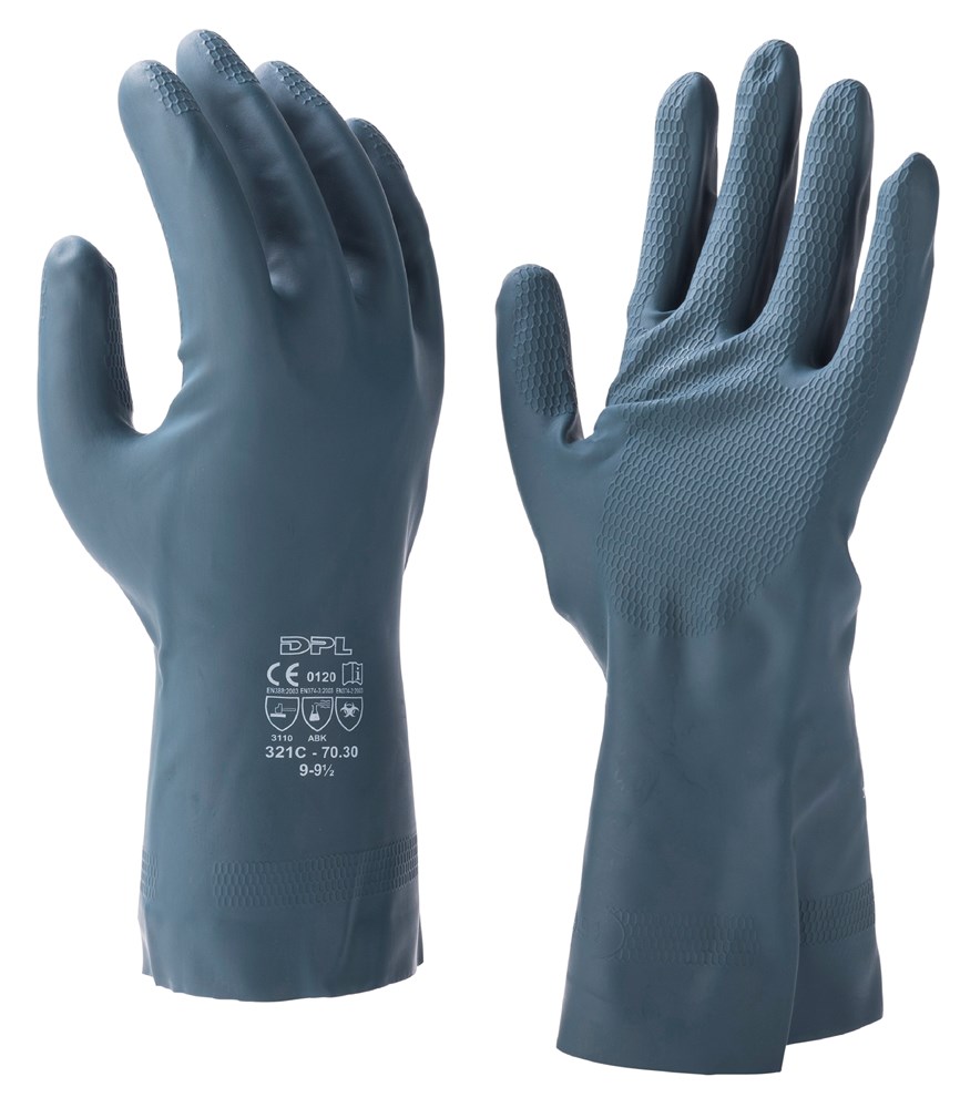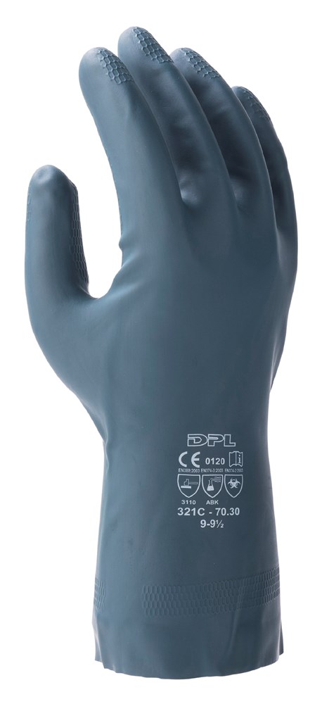 De GRANDEUR70 is een comfortabele zwarte gechloreerde neopreen/latex handschoen voor een betrouwbare chemische resistentie. De GRANDEUR70 heeft een katoenen vlokvoering om transpiratie te absorberen. Het antislippatroon zorgt voor een goede grip in natte en droge omstandigheden.