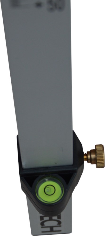Uitschuifbare meetlat tot 350cm met cm/mm aanduiding aan de voorkant en snelklem om de hoogte van de ontvanger snel en eenvoudig te kunnen blokkeren.