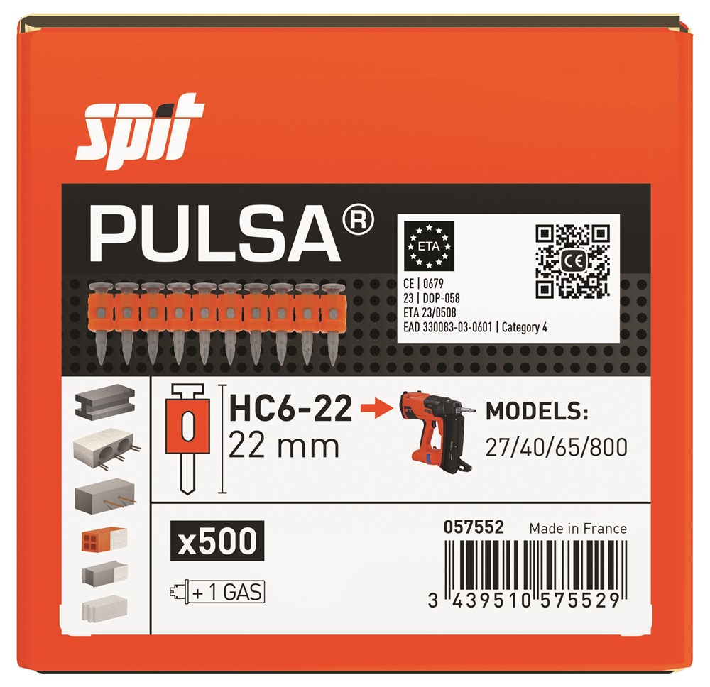 Geharde nagel inclusief gas voor staal, hard en voorgespannen beton
